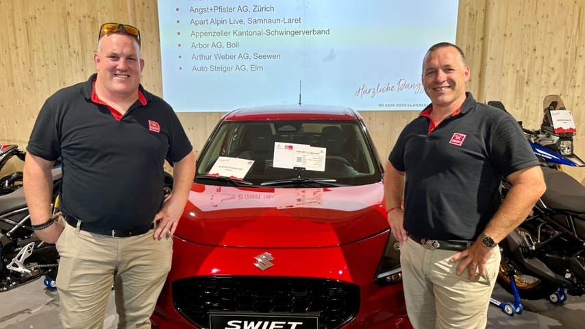SUZUKI - Un segno forte di atletismo e passione. Anche SUZUKI Schweiz AG contribuisce con orgoglio al tavolo dei premi di quest'anno. Con una sportiva SUZUKI SWIFT TRADIZIO, numerose motociclette e scooter, nonché un gommone con un affidabile motore fuoribordo, SUZUKI dimostra il suo legame con la tradizione e la modernità. Questi premi di alto valore sono sinonimo di prestazioni, divertimento e mobilità, valori che SUZUKI associa alla lotta svizzera.